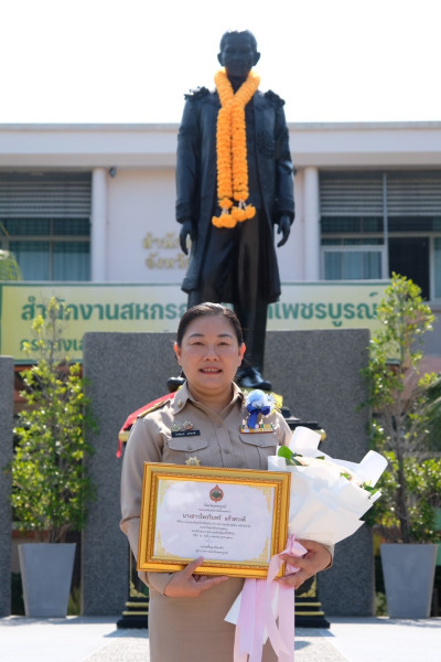 วันที่ 30 มีนาคม 2569 นายพงศธร ศรีชัย สหกรณ์จังหวัดเพชรบูรณ์ พร้อมด้วยบุคลากรในสังกัด ร่วมมอบช่อดอกไม้เพื่อแสดงความยินดีให้กับ นางสาวไพรรินทร์ แก้วดวงดี นักวิชาการสหกรณ์ชำนาญการเข้ารับมอบเกียรติบัตรเพื่อยกย่องเชิดชูเกียรติให้เป็น ข้าราชการพลเรือนดีเด่น ระดับจังหวัดประจำปี 2568 โดยมีนายศรัณยู มีทองคำ ผู้ว่าราชการจังหวัดเพชรบูรณ์ เป็นประธานในพิธีมอบเกียรติบัตร เนื่องด้วยรัฐบาลกำหนดให้วันที่ 1 เมษายน ของทุกปี เป็นวันข้าราชการพลเรือนเพื่อระลึกถึงคุณงามความดีของข้าราชการพลเรือนที่ได้ปฏิบัติหน้าที่ด้วยความซื่อสัตย์สุจริต เสียสละ และอุทิศตนเพื่อประโยชน์ของประเทศชาติและประชาชน ณ ห้องเมืองราด ชั้น 5 อาคาร 2 ศาลากลางจังหวัดเพชรบูรณ์