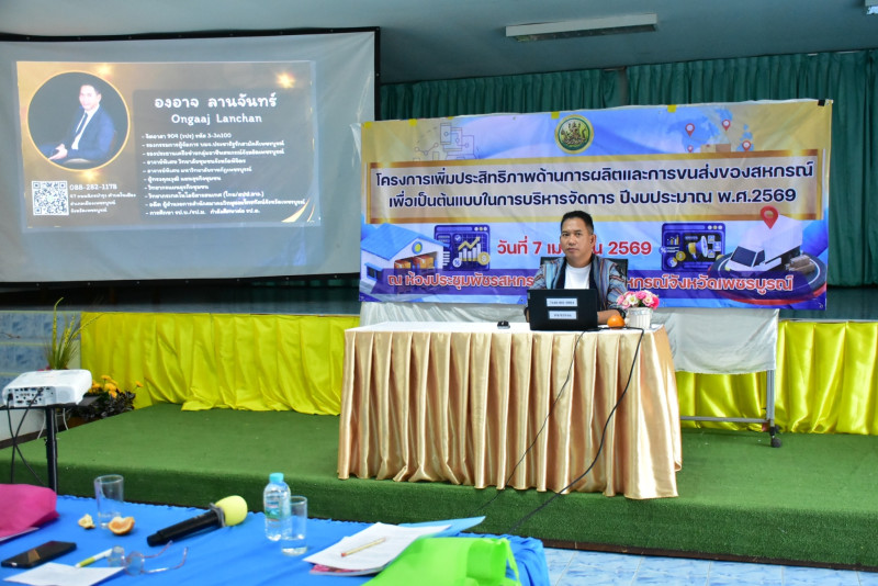 วันที่ 7 เมษายน 2569 นายพงศธร ศรีชัย สหกรณ์จังหวัดเพชรบูรณ์ มอบหมายให้กลุ่มส่งเสริมและพัฒนาธุรกิจสหกรณ์ ดำเนินโครงการเพิ่มประสิทธิภาพด้านการผลิตและการขนส่งของสหกรณ์ เพื่อเป็นต้นแบบในการบริหารจัดการ ณ ห้องประชุมพัชรสหกรณ์ สำนักงานสหกรณ์จังหวัดเพชรบูรณ์ โดยมีนางสาวจุฑาลักษณ์ ใจเที่ยงธรรม ผู้จัดการศูนย์ให้บริการ SME ครบวงจร เป็นวิทยากรให้ความรู้ด้านการเชื่อมโยงธุรกิจและระบบโลจิสติกส์ และนายองอาจ ลานจันทร์ รองกรรมการผู้จัดการ บริษัท ประชารัฐรักสามัคคีเพชรบูรณ์ - วิสาหกิจเพื่อสังคม จำกัด เป็นวิทยากรให้ความรู้ในด้านเทคนิคการจัดงานมหกรรมสินค้า ให้กับสมาชิกสหกรณ์