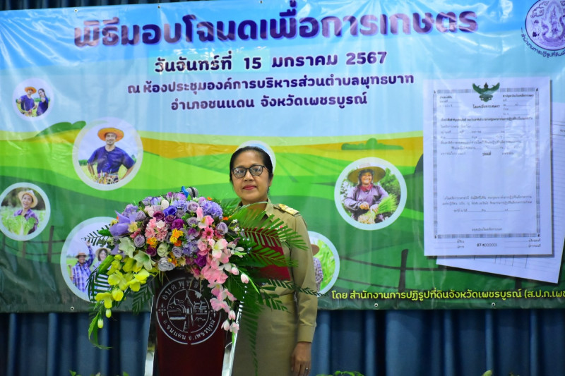 เมื่อวันที่ 15 มกราคม 2567 นายเสรี ฉิมพลี นักวิชาการสหกรณ์ชำนาญการพิเศษ รักษาราชการแทนสหกรณ์จังหวัดเพชรบูรณ์ มอบหมายให้ นางสาวมณีวรรณ ปลัดท้วม ผู้อำนวยการกลุ่มส่งเสริมและพัฒนาธุรกิจสหกรณ์ เข้าร่วมพิธีมอบโฉนดเพื่อการเกษตร Kick Off พร้อมกันทั่วประเทศ โดยมีนางพัชรี ศาลาศิลป์ รองผู้ว่าราชการจังหวัดเพชรบูรณ์ เป็นประธานในพิธี มีหัวหน้าส่วนราชการกระทรวงเกษตรและสหกรณ์ องค์กรปกครองส่วนท้องถิ่นและผู้นำหมู่บ้านในพื้นที่ อำเภอชนแดน และอำเภอวังโป่งเข้าร่วมพิธี มีเกษตรเกษตรที่ได้รับสิทธิในพื้น ส.ป.ก. เข้ารับมอบโฉนดเพื่อการเกษตร จำนวน 130 ราย ณ ห้องประชุมองค์การบริหารส่วนตำบลพุทธบาท อำเภอชนแดน จังหวัดเพชรบูรณ์
