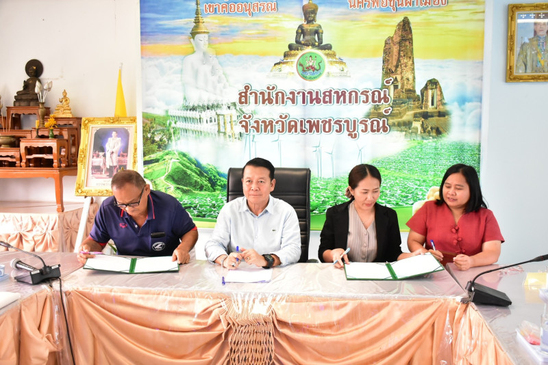 วันที่ 23 พฤษภาคม 2568 นายพงศธร ศรีชัย สหกรณ์จังหวัดเพชรบูรณ์ เป็นประธานเปิดการประชุมเชิงปฏิบัติการเชื่อมโยงการเป็นหุ้นส่วนเศรษฐกิจภาคเอกชนเพื่อเสริมสร้างความได้เปรียบในการแข่งขันของสหกรณ์และชุมนุมสหกรณ์เดินรถระดับพื้นที่ ภายใต้โครงการส่งเสริมการเป็นหุ้นส่วนเศรษฐกิจกับภาคเอกชนของสหกรณ์และชุมนุมสหกรณ์ ประจำปีงบประมาณ พ.ศ.2568 และร่วมบรรยายพิเศษ การเชื่อมโยงธุรกิจการเดินรถกับธุรกิจการท่องเที่ยว และร่วมลงนามบันทึกข้อตกลง(MOU) ระหว่างสหกรณ์เดินรถเพชรบูรณ์ จำกัด และ SP ฟาร์มสเตย์เพชรบูรณ์ เพื่อให้บริการรถโดยสารสำหรับนักท่องเที่ยว โดยความร่วมมือจาก สหกรณ์เดินรถเพชรบูรณ์ จำกัด ในการอำนวยความสะดวกด้านการเดินทางท่องเที่ยวอย่างปลอดภัยและมีมาตรฐาน โดยมีนางสาวมณีวรรณ ปลัดท้วม ผู้อำนวยการกลุ่มส่งเสริมและพัฒนาธุรกิจสหกรณ์ สำนักงานสหกรณ์จังหวัดเพชรบูรณ์ ร่วมเป็นสักขีพยาน และได้รับเกียรติจาก คุณศุภลักษณ์ ผลบุญ จาก SP ฟาร์มสเตย์เพชรบูรณ์ เป็นวิทยากรบรรยายให้ความรู้ในหัวข้อการเชื่อมโยงการท่องเที่ยวเชิงเกษตร และ นางสาวสร้อยศิรินทร์ ตระกรูแก้ว ผู้อำนวยการกลุ่มตรวจการสหกรณ์ บรรยายในหัวข้อ การตรวจสอบและการควบคุมภายใน เบื้องต้น กับสมาชิกสหกรณ์ฯ ณ ห้องประชุมราชพฤกษ์ สำนักงานสหกรณ์จังหวัดเพชรบูรณ์ อำเภอเมืองเพชรบูรณ์ จังหวัดเพชรบูรณ์