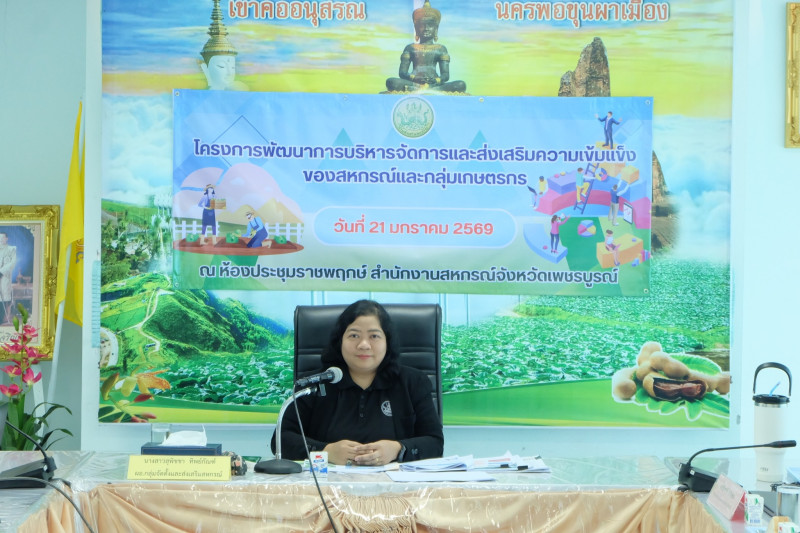 วันที่ 21 มกราคม 2569 นายพงศธร ศรีชัย สหกรณ์จังหวัดเพชรบูรณ์ มอบหมายให้นางสาวสุพิชชา ทิพย์กัณฑ์ นักวิชาการสหกรณ์ชำนาญการพิเศษ พร้อมด้วยบุคลากรสำนักงานสหกรณ์จังหวัดเพชรบูรณ์ และบุคลากรสำนักงานตรวจบัญชีสหกรณ์เพชรบูรณ์ จัดประชุมโครงการพัฒนาการบริหารจัดการและส่งเสริมความเข้มแข็งของสหกรณ์และกลุ่มเกษตรกร เพื่อดำเนินการร่วมกันระหว่างเจ้าหน้าที่สำนักงานสหกรณ์จังหวัดเพชรบูรณ์ เจ้าหน้าที่ของสำนักงานตรวจบัญชีสหกรณ์เพชรบูรณ์ และผู้ที่เกี่ยวข้อง รวม 15 คน โดยมีวัตถุประสงค์เพื่อวิเคราะห์ปัญหาในด้านมิติต่างๆ ของการประเมินชั้นความเข้มแข็งรวมทั้งแนวทางในการแก้ไขเพื่อยกระดับชั้นความเข้มแข็งให้ดีขึ้น ณ ห้องประชุมราชพฤกษ์ สำนักงานสหกรณ์จังหวัดเพชรบูรณ์ ตำบลสะเดียง อำเภอเมืองเพชรบูรณ์ จังหวัดเพชรบูรณ์